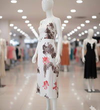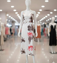 Elegance meets artistry in this ivory satin midi dress featuring a bold, hand-painted style floral print. Designed with delicate spaghetti straps and a flattering V-neckline, this smooth satin slip offers a sophisticated silhouette for both lounging and evening wear.