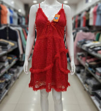 This striking red lace gown features an elegant keyhole neckline and a dramatic knee-length mesh skirt. Accentuated with a large silk-satin bow, it offers a romantic and ethereal look for special evenings.